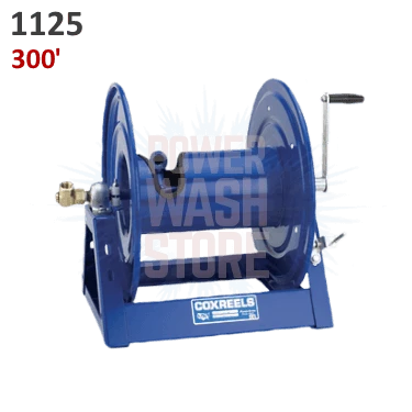 Cox 1125 Series hand crank and motorized hose reels have the features demanded by industry professionals. The industry preferred design features a sturdy one piece all welded “A” frame base, low profile outlet riser and open drum slot design provides a non-crimping, flat smooth hose wrap.