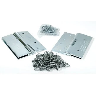 Includes: 2 Hinges, 2 Safety Chains, 12 Screws, 4 Nuts and 4 bolts