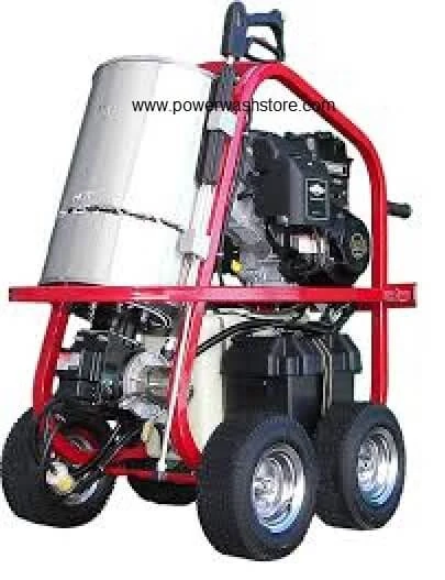 The SH Series is a portable power washer with a small footprint, ideal for use where electrical power is unavailable. An industrial duty engine provides power to the triplex direct-drive pump and thermostatically controlled 12VDC burner. The stainless-wrapped 1/2″ SCH 80 steel coil heats water up to 250 degrees. You will experience extended burner time with the large diesel tank. Its rugged powder-coated frame has a lifting point, integrated hose hooks, and a wheel kit is included for portability.