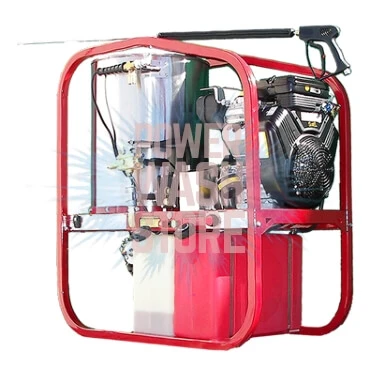 The SK Series is a truly versatile machine. It can be trailer or truck-mounted to work for you, right where you need it. An efficient industrial duty electric-start Vanguard or Honda engine provides power to the pump and 12V diesel burner so no electrical supply is needed. The large, high capacity, ½” SCH 80 coil is stainless steel wrapped and heats the water up to 250°F. You will experience extended run times with the large 8-gallon gas and diesel tanks*. Industrial rated, direct or belt-drive triplex plunger pumps for superior performance and longevity. The unloader is remote mounted allowing for easy maintenance and has an external bypass loop to keep the pump running cool. Burst disc and pressure relief valve for operator safety. A full cage frame with lifting eye protects your machine from damage.
