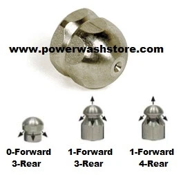 The reverse jets on these nozzles help pull the hose through the sewer pipe or tube blasting debris from the line as it goes.