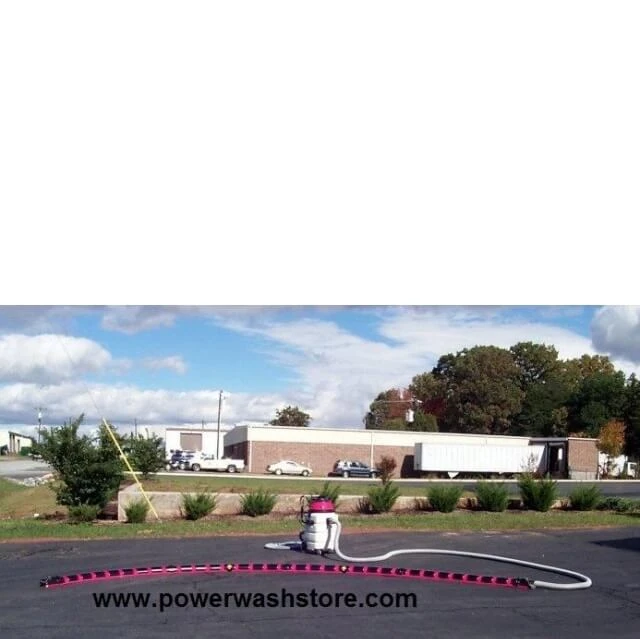 The Vacuboom Waste Water Recovery System allows you to recollect your wash water without having to move vehicles on to a recovery mat. Simply place the recovery boom in the path of the water runoff and connect the hose to the vac system. The optional pump-out system will transfer the wash water to your holding tank for treatment and disposal. A hard, non-porous surface such as asphalt or concrete is required for this system to function properly.